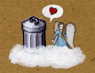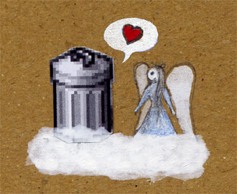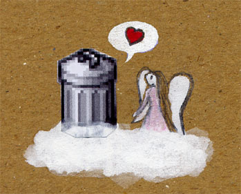 Sulo darf als Tonne zum Himmel fahren und wird neben einen Engel auf eine Wolke gesetzt.