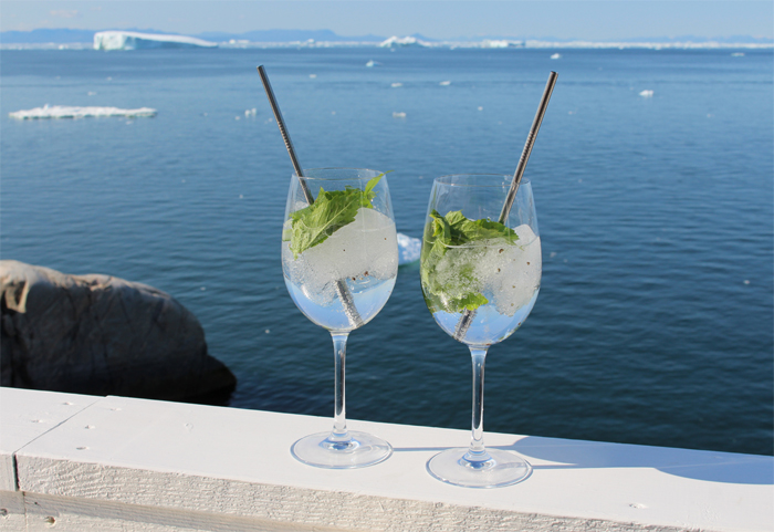 GIN AUS GLETSCHERWASSER, DAZU GLETSCHEREIS, GRÖNLÄNDISCHE KRÄUTER VON QEQERTARSUAQ, TONIC