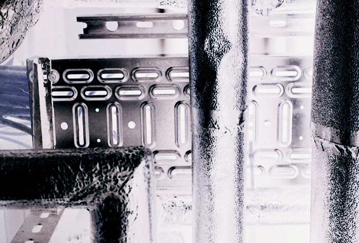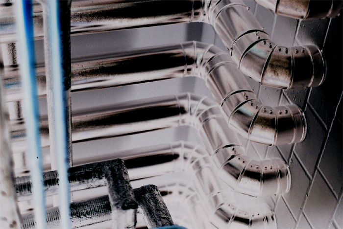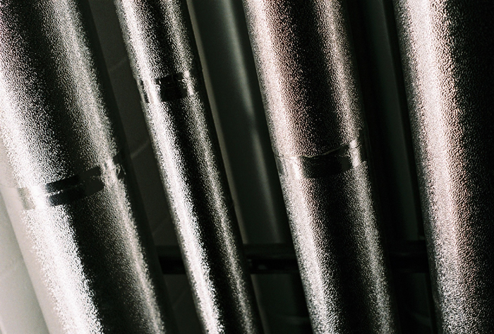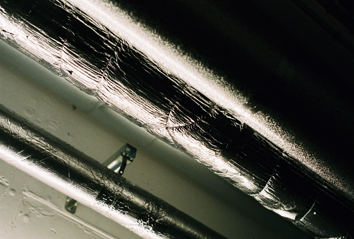 Am rückwärtigen Eingang des weitläufigen Geländes von Rhohausen ging es zu wie auf einer Baustelle. Stahlträger lagen übereinandergestapelt. Männer in blauer Kleidung zogen hölzerne Karren über einen Schotterweg. Katharin betrat Gebäude 501 durch ein Flügeltor und ging durch einen Flur mit einer Reihe dicht nebeneinanderliegender grüner Rauhglasfenster, die sich hoch oben befanden. Katharin parkte meistens neben der Einfahrt für Zulieferer, weil sie von dort aus rasch in das weitverzweigte Kellergeschoß hinunterkam. Noch immer zog sie es vor, durch den Keller zu gehen. Da gab es niedrige, abschüssige Gänge ganz aus Beton, mit gepolsterten Heizungsrohren unter der Decke. In einer Nische leuchtete das Anzeigelämpchen des Aufzugs. Sonst war es fast dunkel; die nächste Lampe brannte in einem Nebenflur.