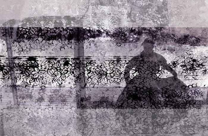Er saß auf dem Bett, den Überwurf um die Schultern gezogen.