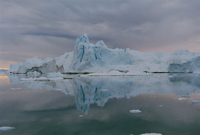 Das Boot durchquerte einen Teppich aus Eisbrocken, die im Dämmerlicht glitzerten. Constri stand über die Reling gebeugt und filmte die Eisstücke auf dem Wasser, in dem sich die tiefstehende Sonne spiegelte, und die rosa-golden leuchtenden Wolken.