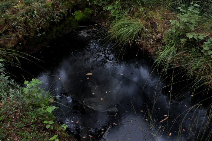 Hinter Birkenwäldern gab es verlassene Torfstichbecken, zwischen denen schmale, brüchige Pfade hindurchführten. Tanha betrachtete sein Spiegelbild im Wasser; da sah er, wie es sich veränderte, und es erschien eine Gestalt in einem rosenfarbenen Gewand, die sagte: